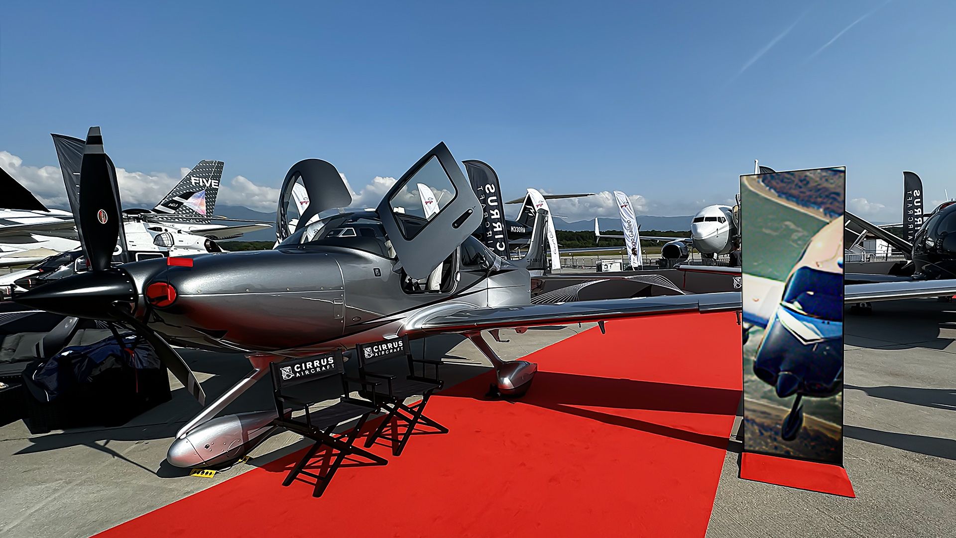 Cirrus Private Jets on outdoor static display at Geneva Airport, providing an impressive and accessible showcase of the latest models.
