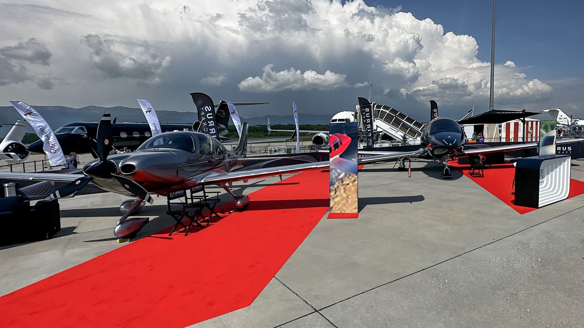Cirrus Private Jets on outdoor static display at Geneva Airport, providing an impressive and accessible showcase of the latest models.