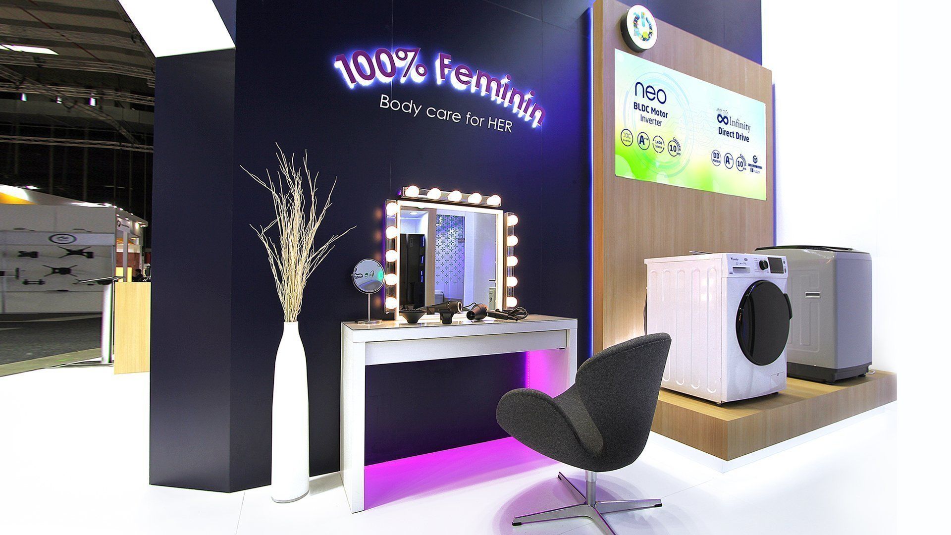 The Condor stand reflects the brand’s spirit, drawing inspiration from its symbol—the condor—and representing flight and dynamic growth. At its core, a striking wing-like structure not only supports the logo but also shapes the entire design.