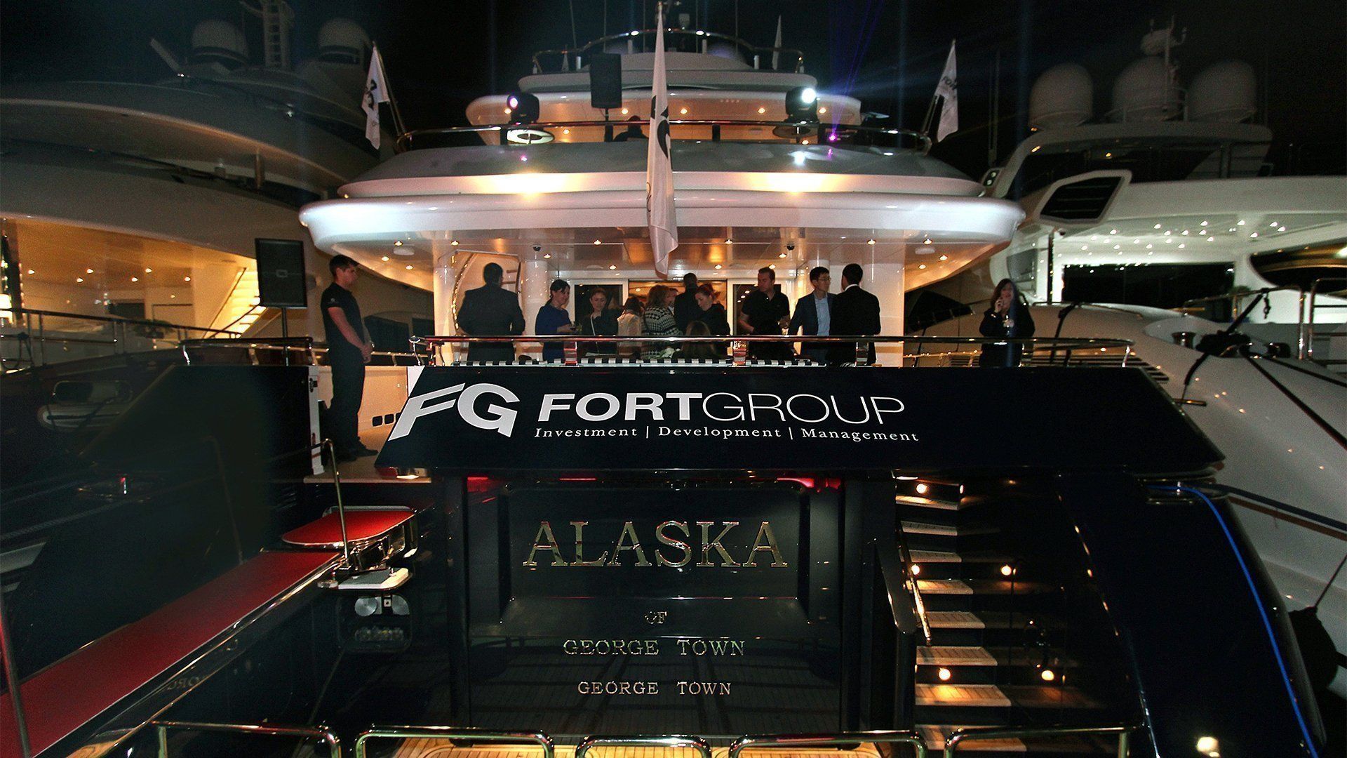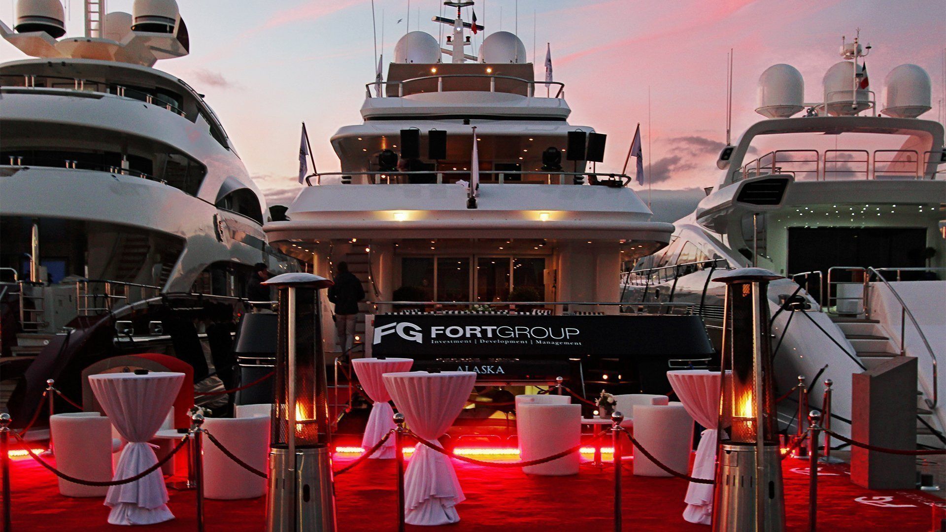 Exquisite dock and motor yacht decoration, creating an opulent and inviting atmosphere for the afterparty.